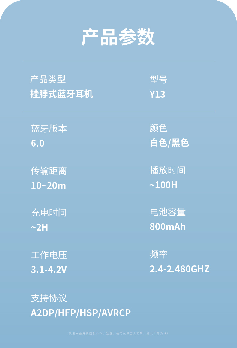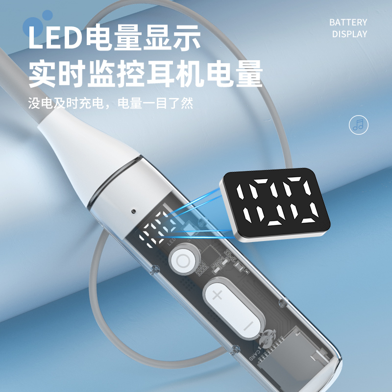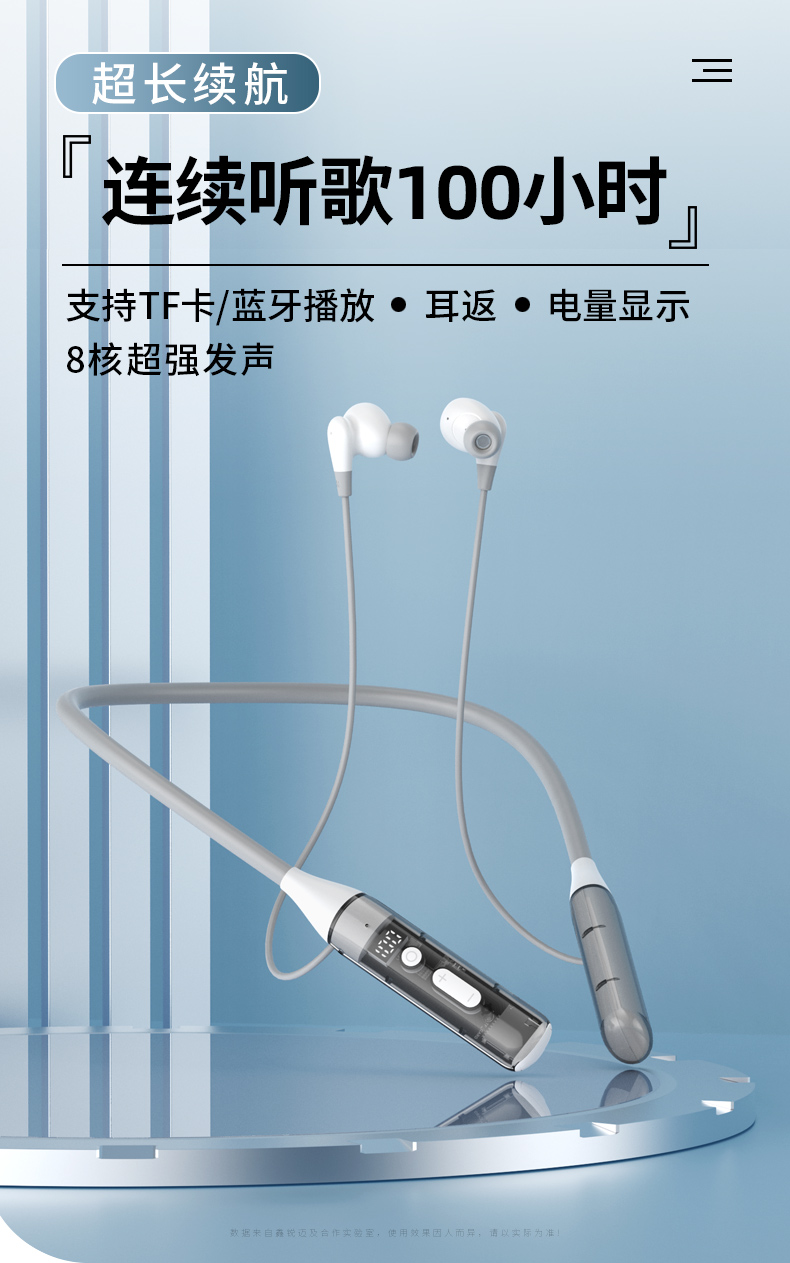 1)续航时间长:挂脖式蓝牙耳机配备大容量电池仓,适合长时间使用