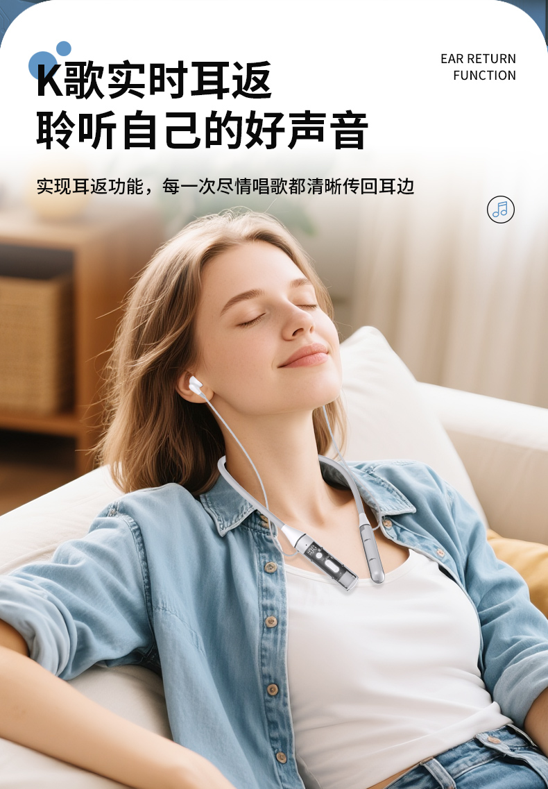 2025全新升级挂脖式蓝牙耳机:实时耳返/唱片级动感声浪/LED电量数显。K歌模式实时耳返监听:K歌时,开启耳返功能,实时反馈,精准监听,让每一次演唱都完美无瑕。无论是在室内还是室外,实时耳返K歌更爽,打造录音棚般原声音质。 都能确保声音质量达到极致,带给您前所未有的自信与掌控力。